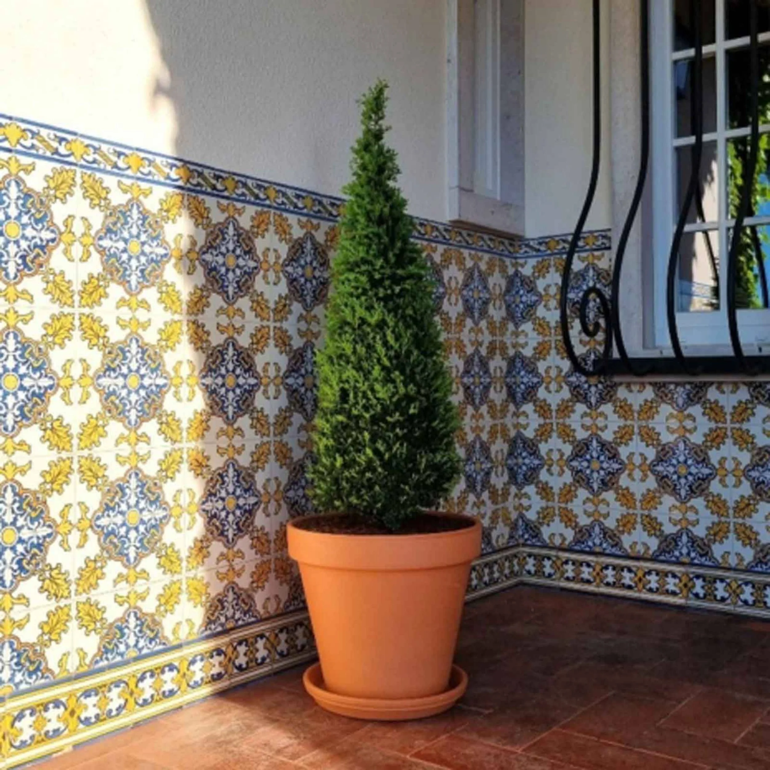 O Buxus sempervirens é uma planta ornamental elegante, cultivada em formato piramidal para dar altura e estrutura a jardins e entradas. Perfeita para quem procura uma planta de fácil manutenção, que adiciona um toque clássico e sofisticado a qualquer ambiente exterior.