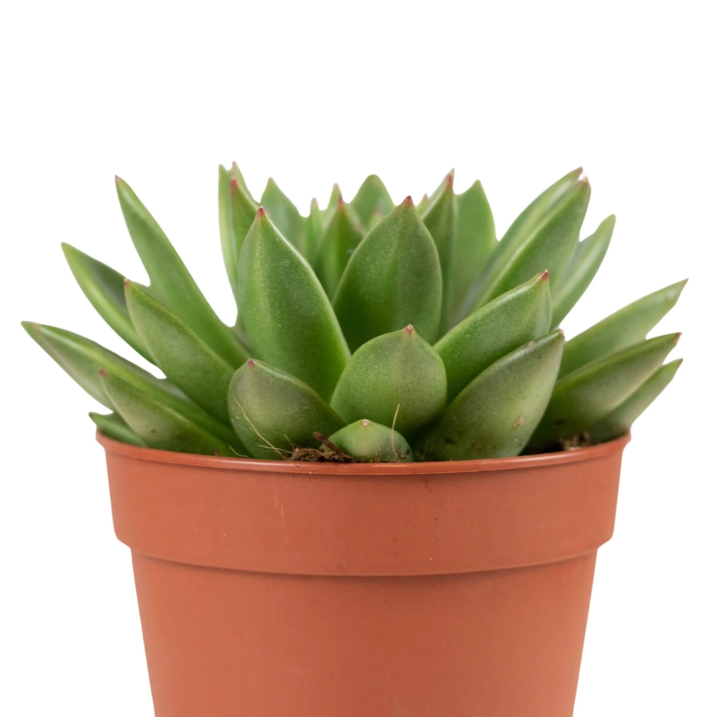 A Echeveria agavoides é uma suculenta deslumbrante que se destaca pela roseta compacta de folhas carnudas e pontiagudas, reminiscentes das folhas de uma agave. Esta planta é perfeita para adicionar um toque de verde e elegância a qualquer espaço, seja no interior ou exterior da tua casa.