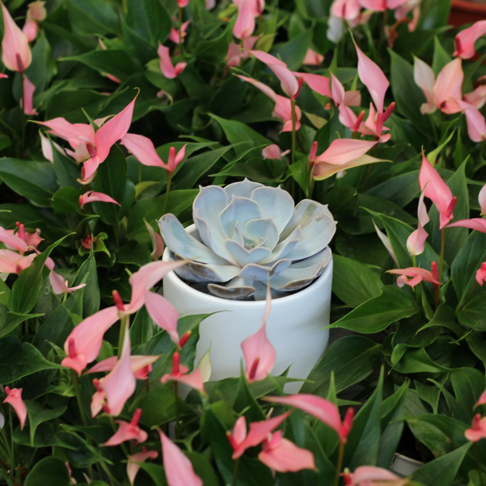 A Echeveria lilacina, ou Echeveria lilás, é uma suculenta originária do México que se destaca pelo seu tom lilás esbranquiçado e pela forma harmoniosa das suas folhas carnudas em roseta. A sua aparência quase escultórica torna-a uma escolha muito popular entre amantes de plantas e design de interiores.