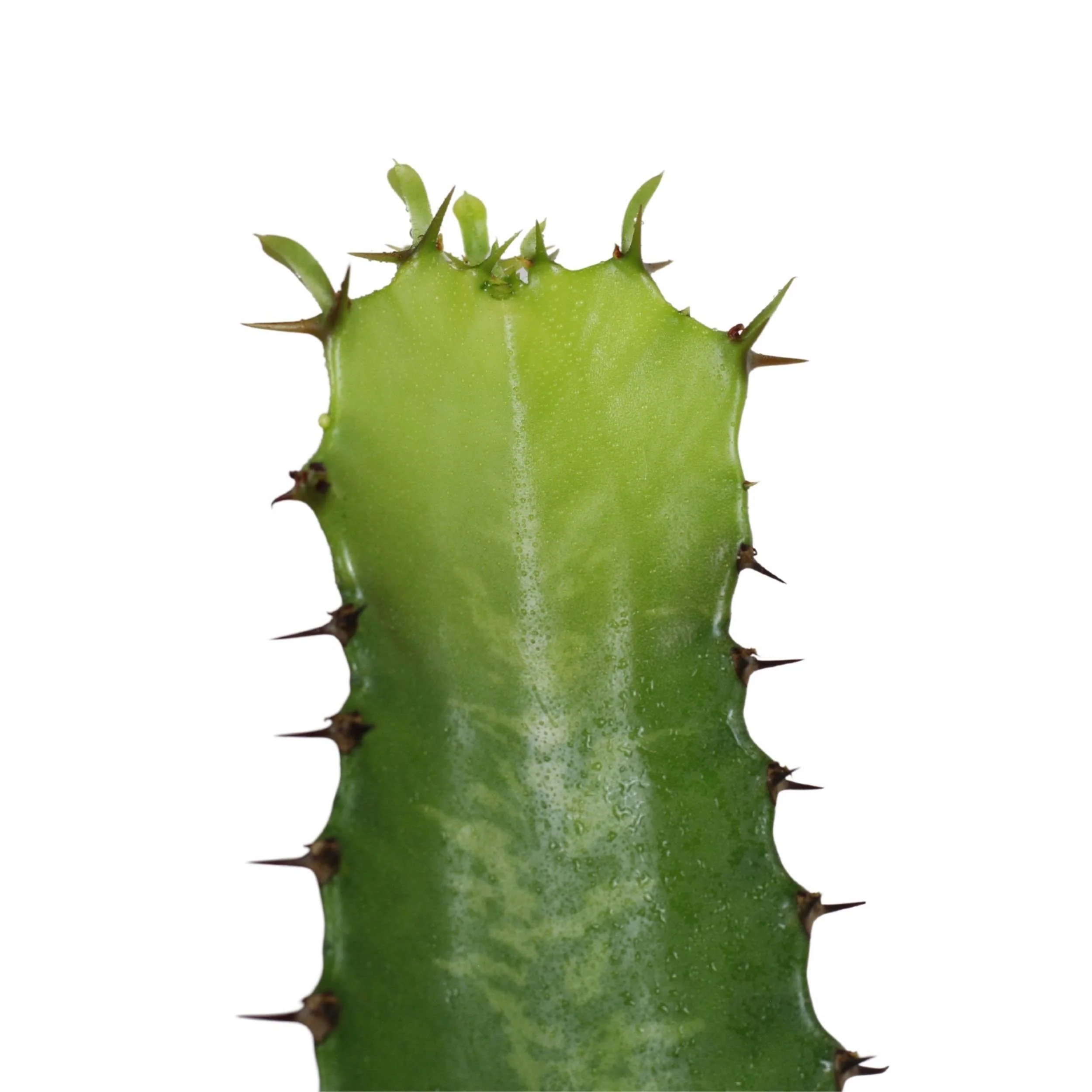 Originária da região árida da África do Sul, esta Euphorbia é uma verdadeira jóia para o teu jardim. Os caules espinhosos e suculentos exibem uma tonalidade verde exuberante, criando um contraste impressionante em qualquer ambiente. Cada caule é uma obra de arte por si só, com curvas graciosas que atraem todos os olhares. A sua origem africana confere-lhe uma resistência única e uma beleza que perdura, tornando-a uma escolha incrível para os teus espaços interiores e exteriores. Proveniente de climas áridos, esta planta prospera sob o sol pleno e cresce feliz em qualquer solo bem drenado. A sua resistência à seca faz com que seja ideal para todos os tipos de jardim e jardineiros, refletindo a sua capacidade de sobrevivência nas condições mais adversas.