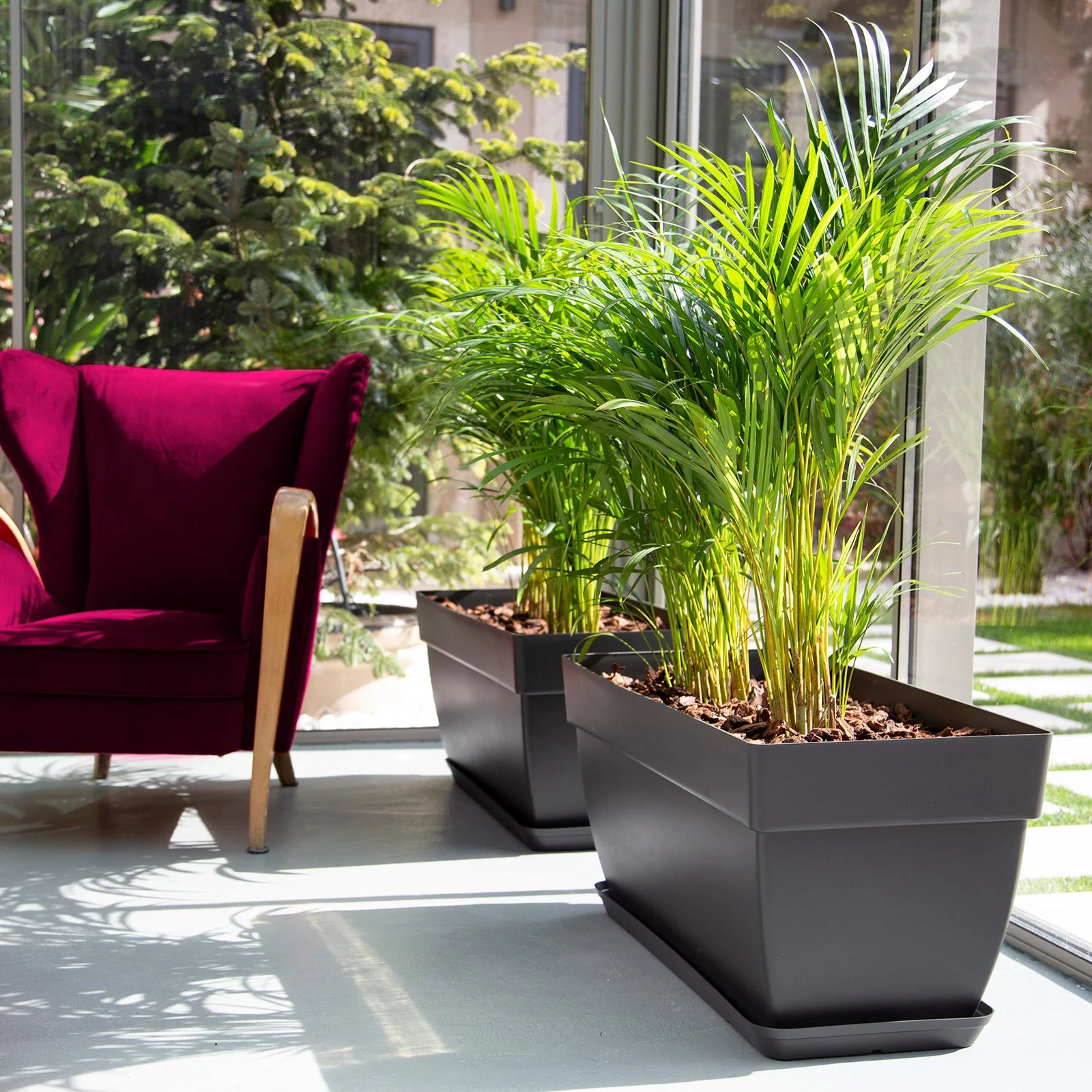 ATENÇÃO: Para uma utilização em ambientes interiores, é aconselhado usar um prato adequado à floreira capri XL para evitar que excessos de água passem para outras superfícies.