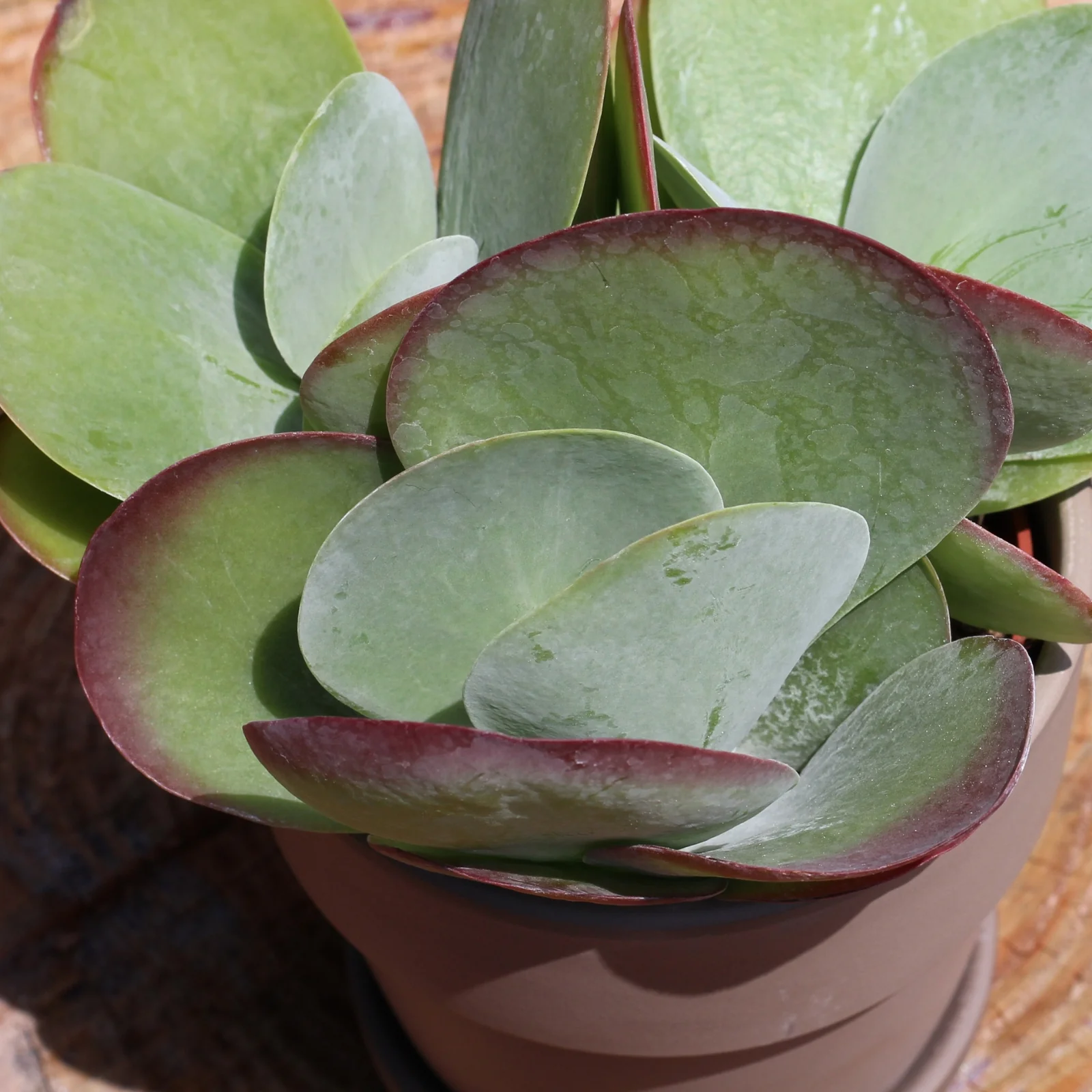 A Kalanchoe thyrsiflora é uma suculenta escultural e inconfundível, conhecida pelas folhas arredondadas em tons de verde-acinzentado com bordas avermelhadas. Uma planta resistente e decorativa, perfeita para quem gosta de formas ousadas e de fácil manutenção.