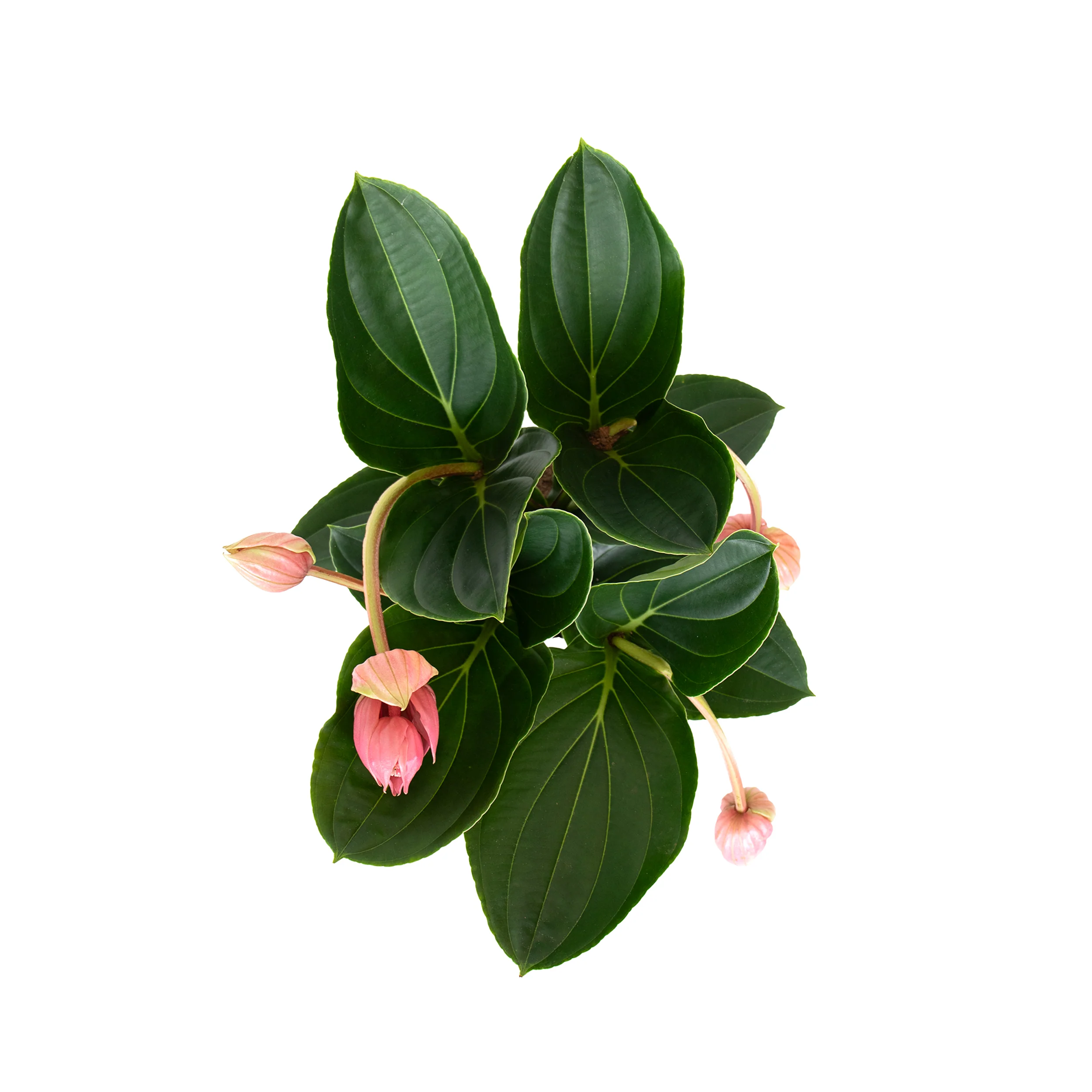 Esta planta tropical impressiona com as suas flores pendentes em tons vibrantes de rosa e coral, que parecem pequenas jóias. A Medinilla magnifica 'Flamenco' é ideal para quem deseja acrescentar um toque de luxo tropical em casa. As folhas verdes escuras complementam perfeitamente as flores exuberantes, criando um visual impactante.