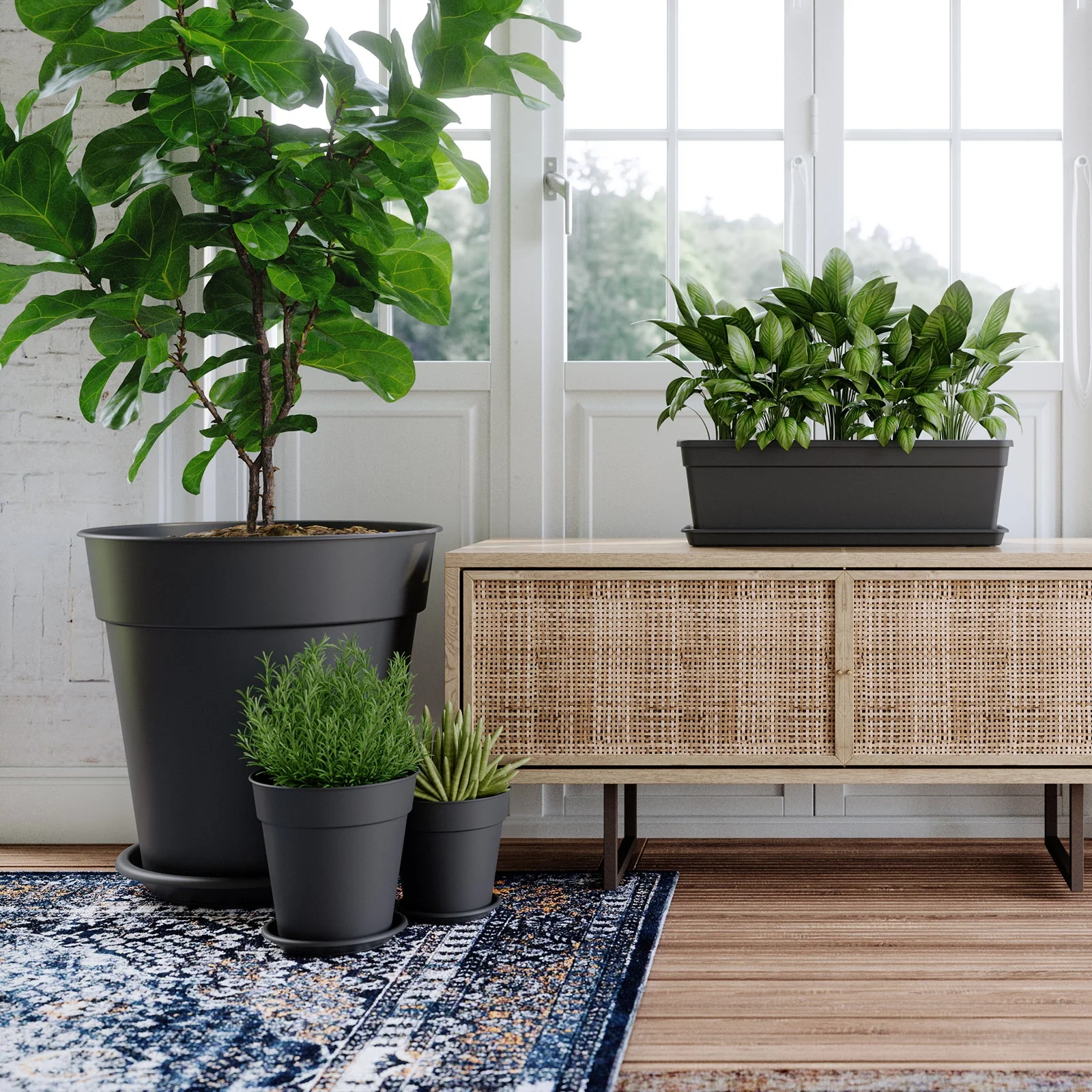 O Prato Redondo serve como base e ajuda na manutenção da planta. Para além de ser compatível com as diversas gamas de vasos disponíveis, auxilia e facilita o cuidado da planta.